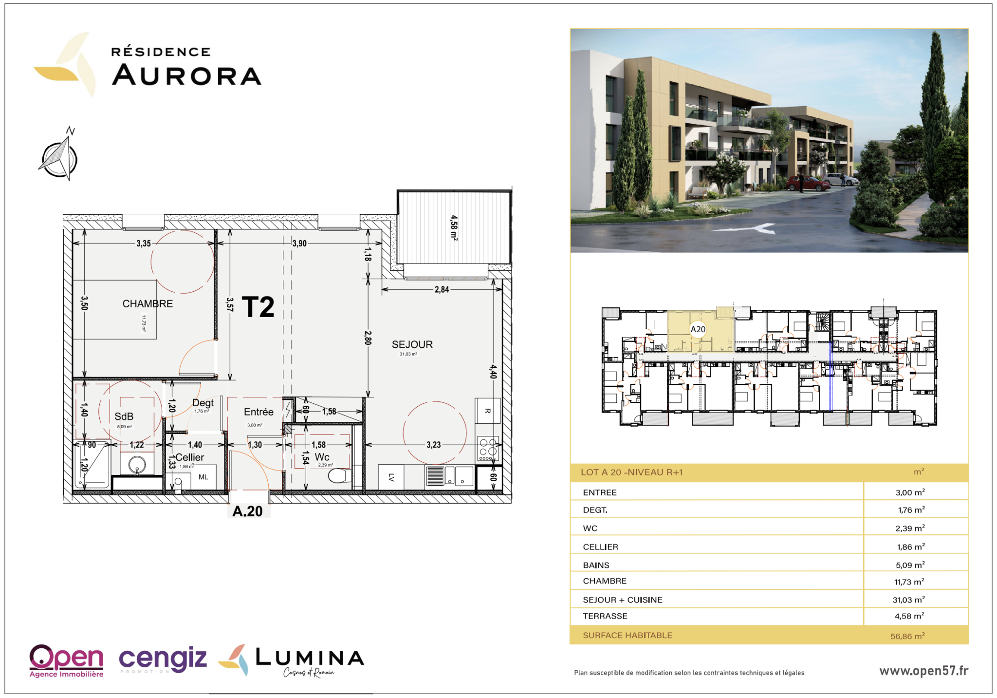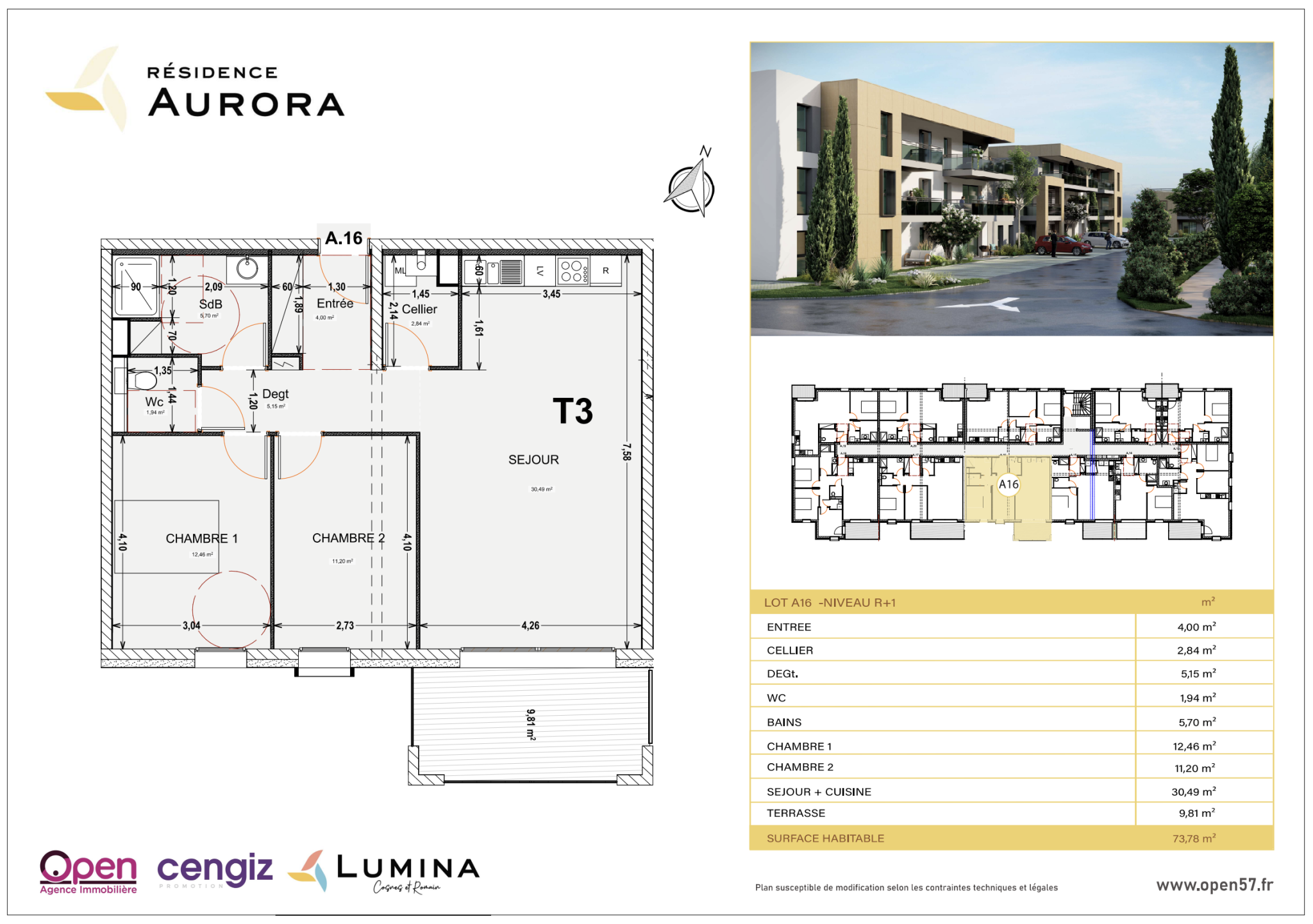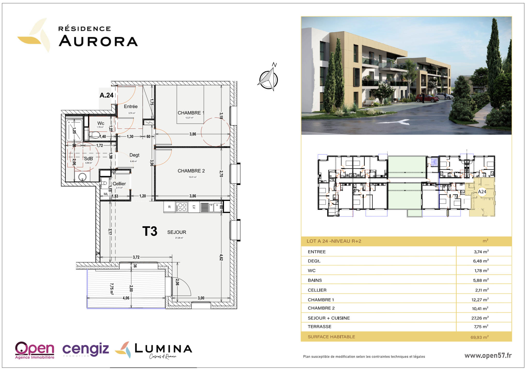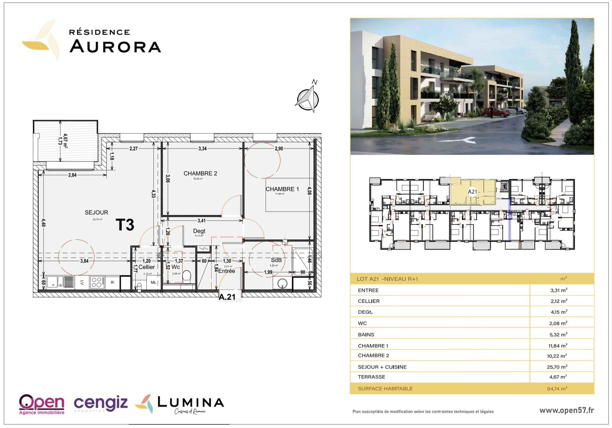 COSNES-ET-ROMAIN, Résidence Aurora, Appartement T3 au R+1, 234 000€