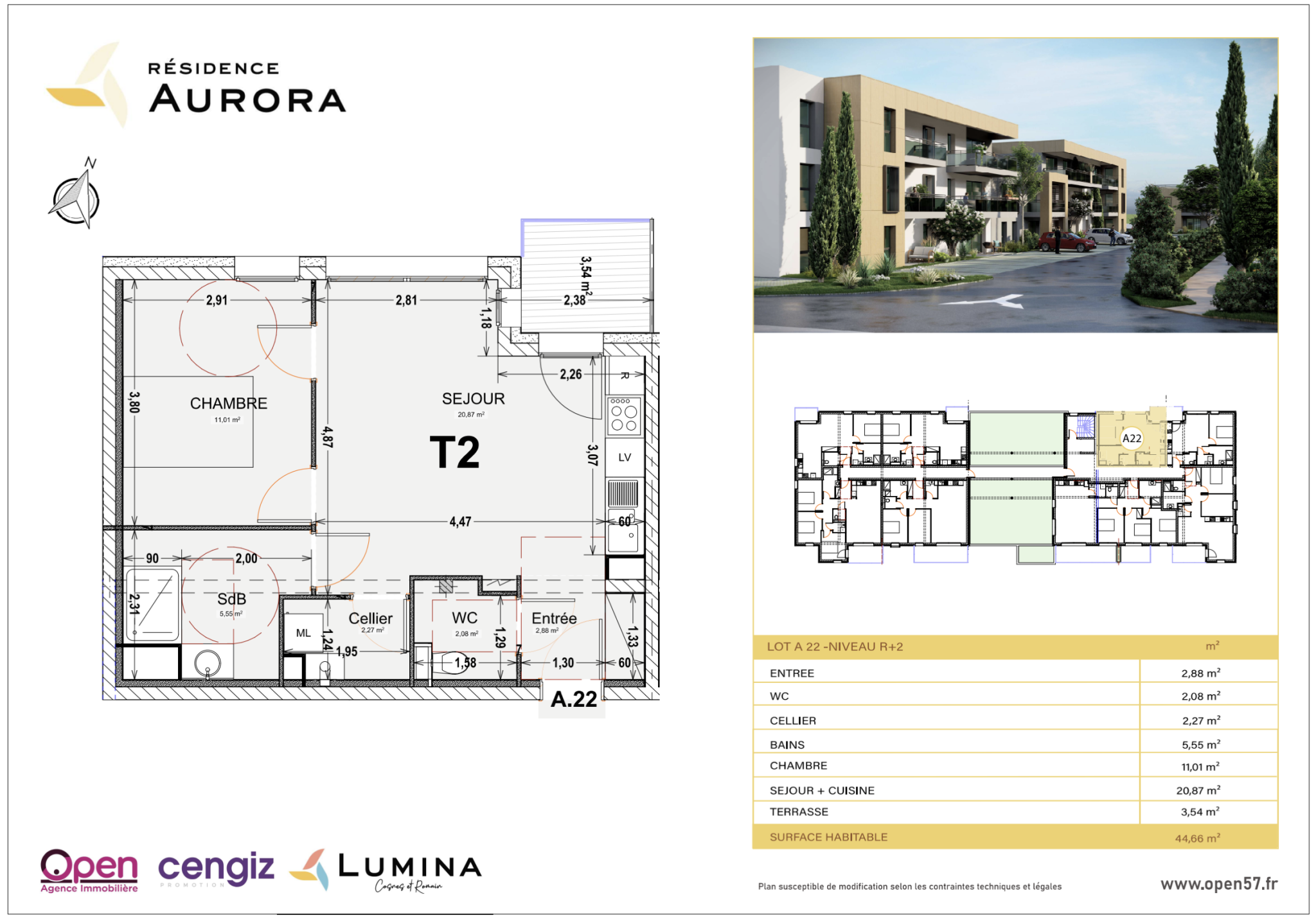 COSNES-ET-ROMAIN, Résidence Aurora, Appartement T2 au R+1, 222 000€