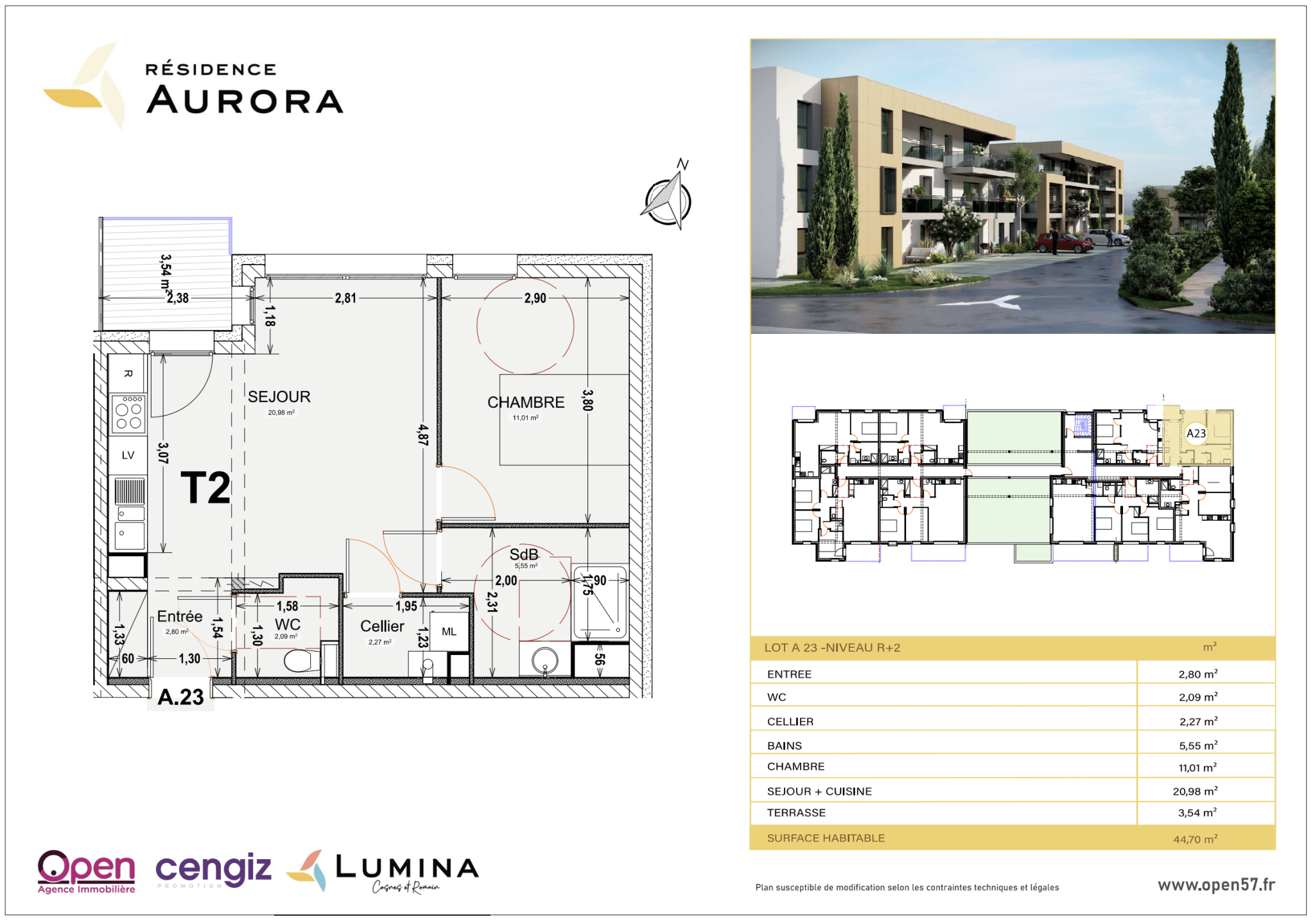 COSNES-ET-ROMAIN, Résidence Aurora, Appartement T2 au R+1, 205 000€