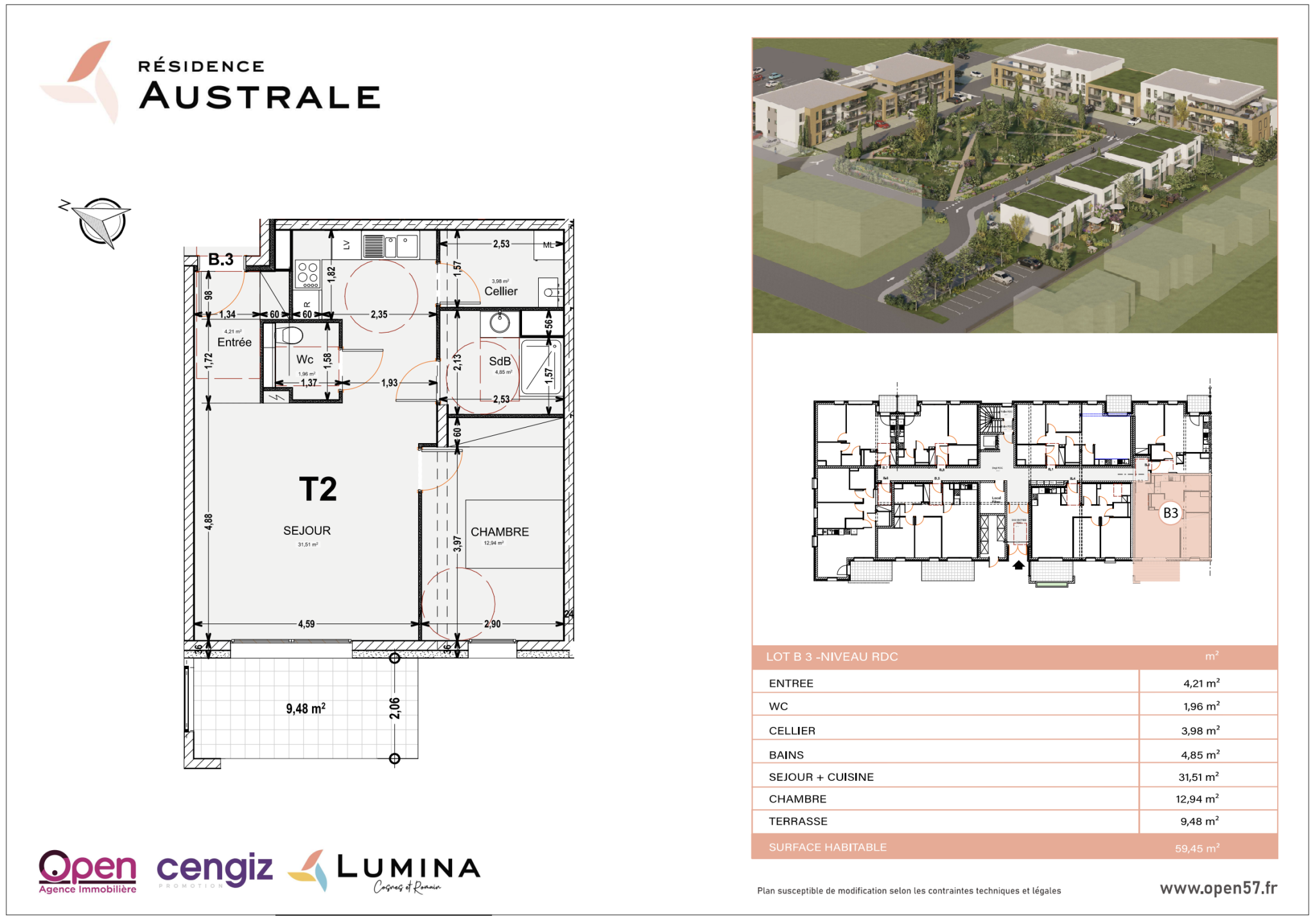 COSNES-ET-ROMAIN, Résidence Australe, Appartement T3 au R+1, 235 000€