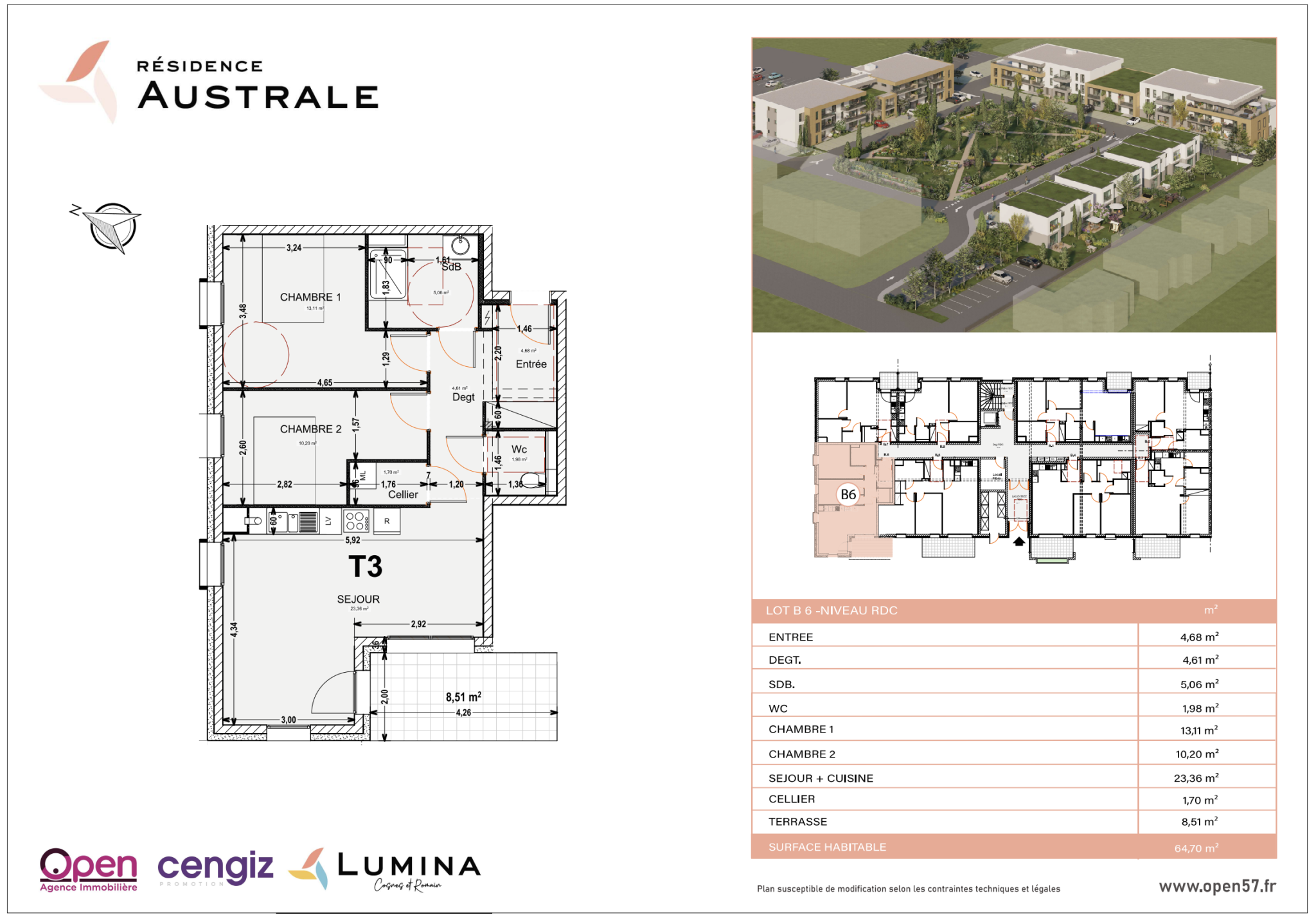 COSNES-ET-ROMAIN, Résidence Australe, Appartement T3 au RDC, 258 000€
