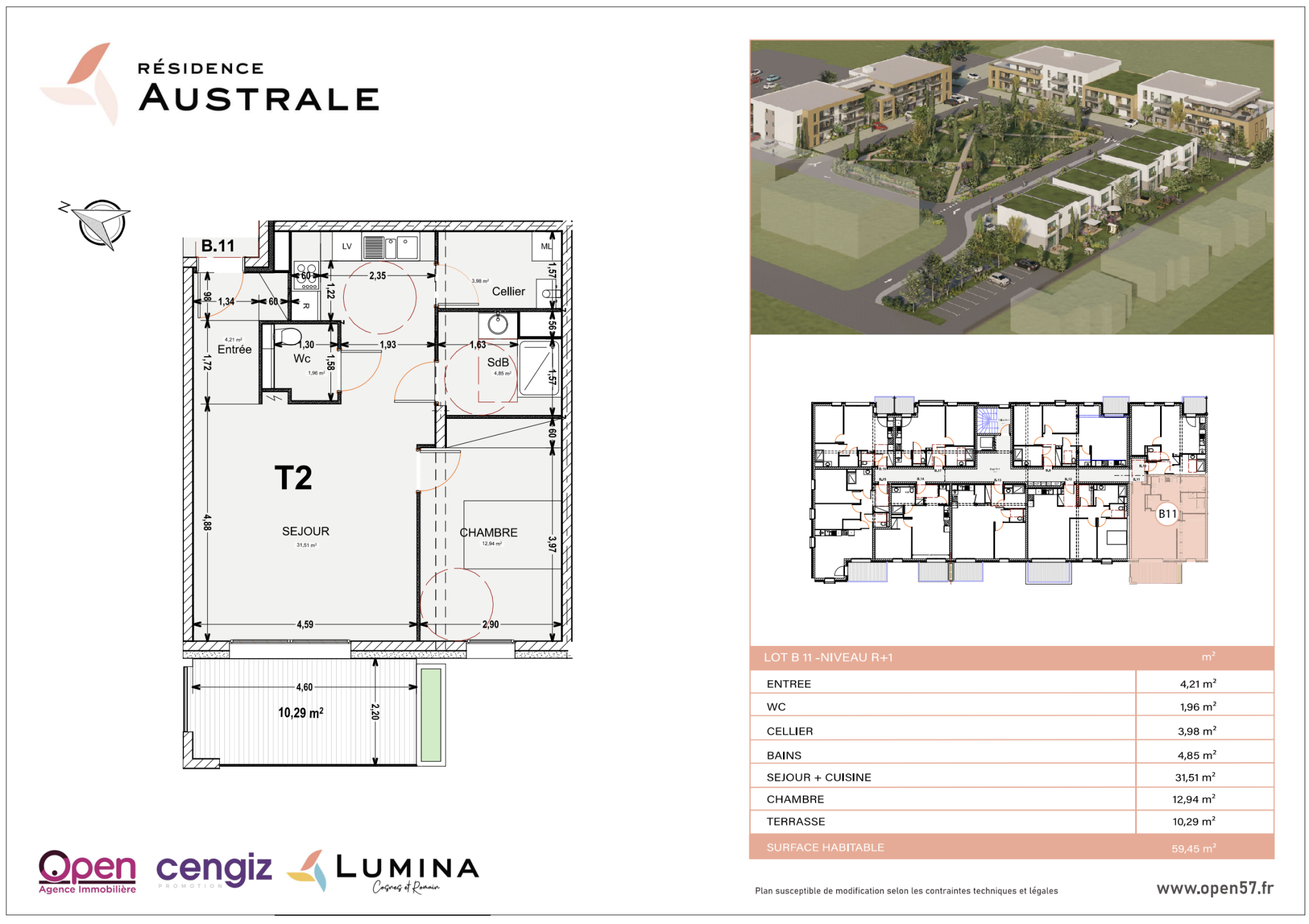 COSNES-ET-ROMAIN, Résidence Australe, Appartement T2 au R+1, 173 000€