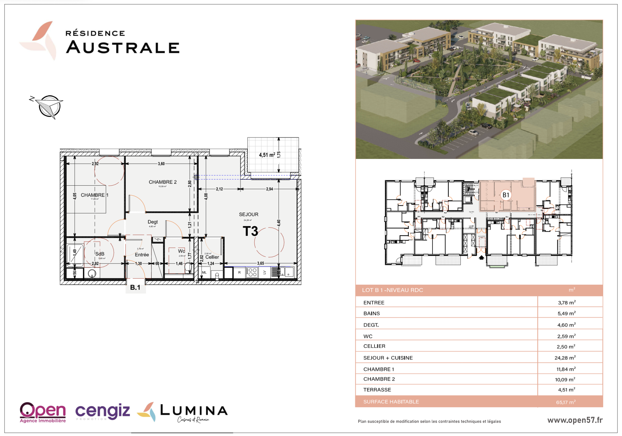 COSNES-ET-ROMAIN, Résidence Australe, Appartement T3 au RDC, 235 000€