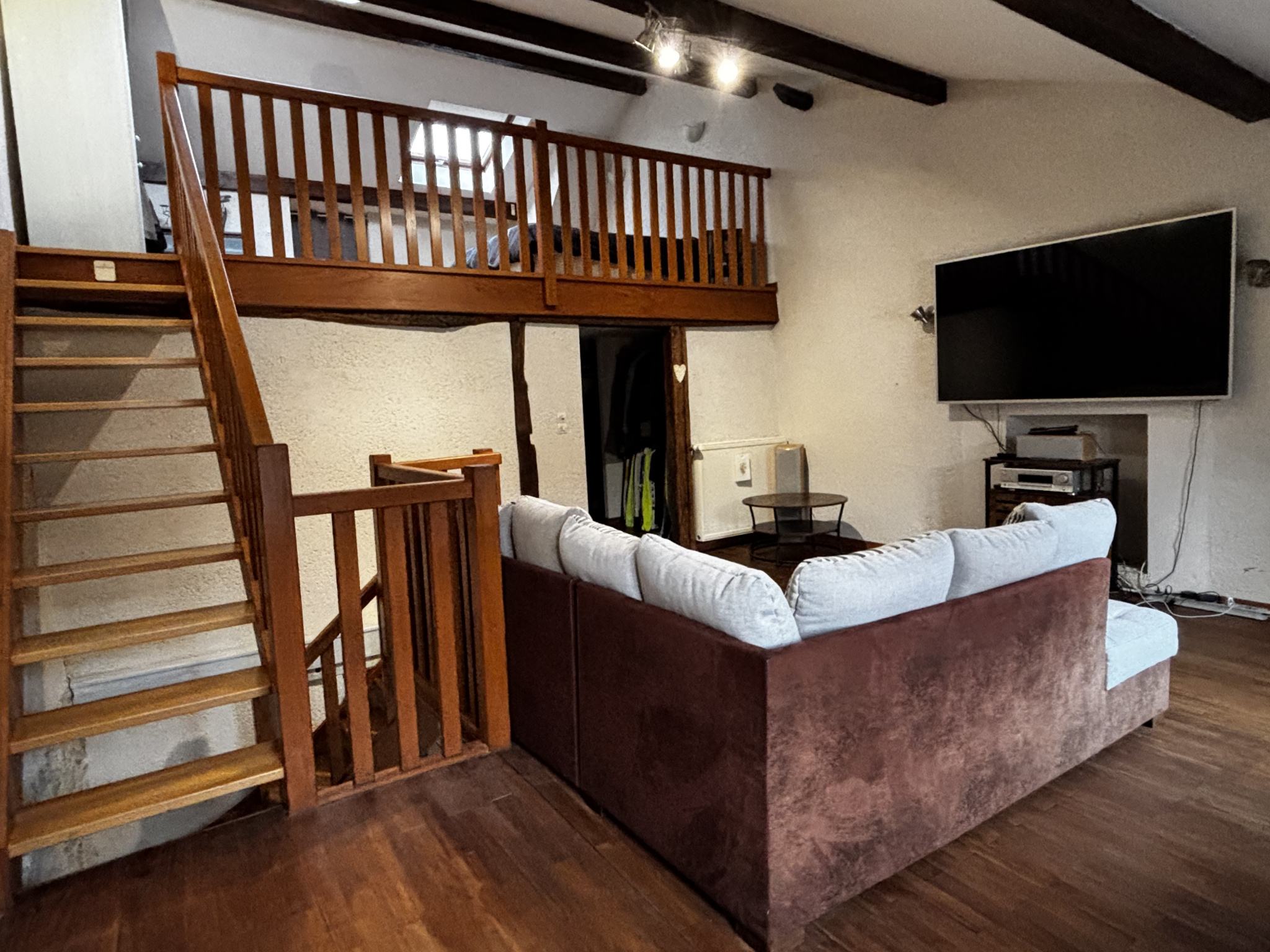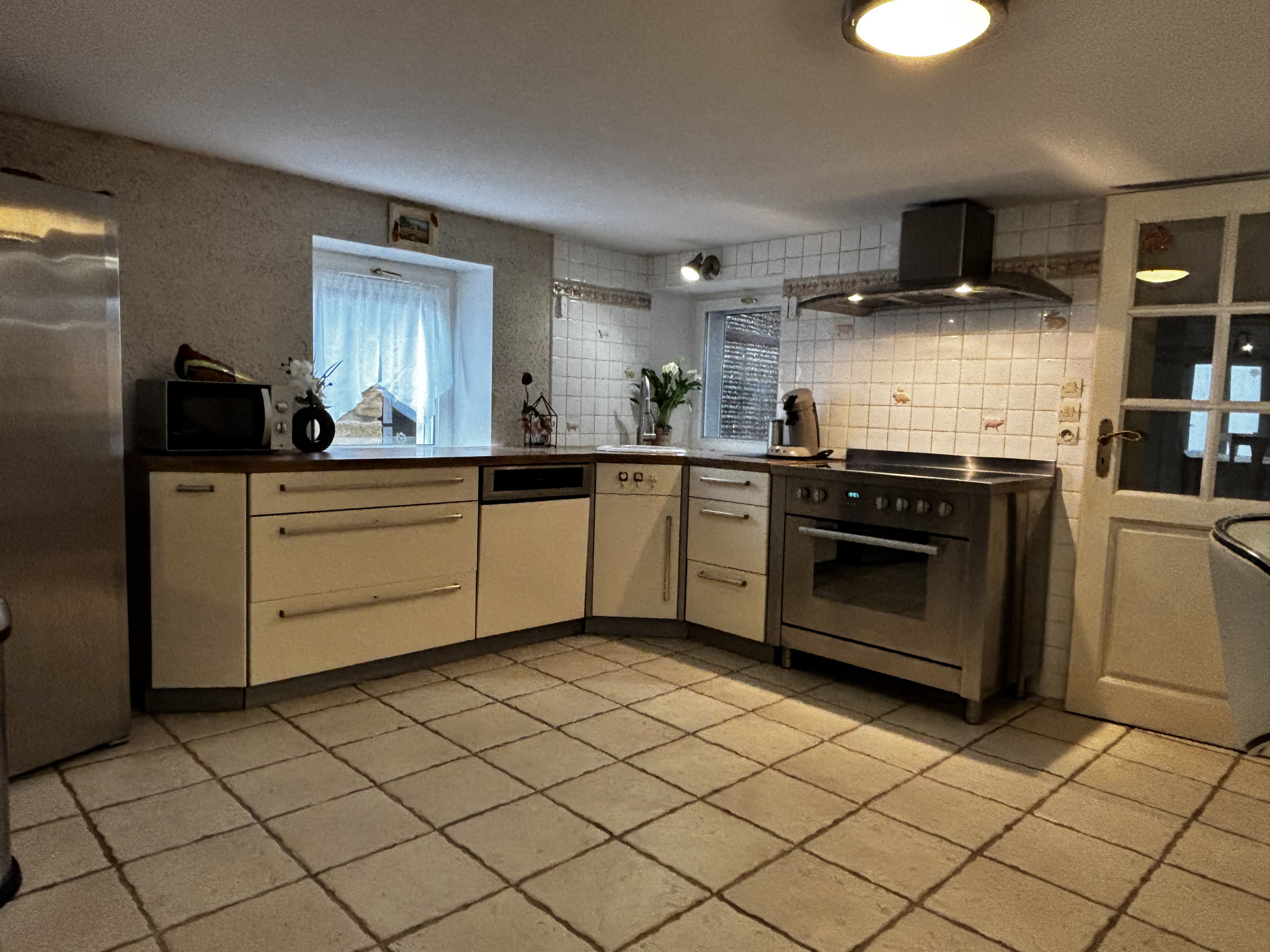 Maison en pierre mitoyenne d’un seul côté 120 m2 habitables Jardin, terrasse, jacuzzi Parcelle 239 m2 Cette charmante maison en pierre, saine et très bien entretenue, offre une surface habitable de 120 m2 répartie sur trois niveaux, sur un terrain clos et arboré de 239 m2.  Description du bien Rez-de-chaussée surélevé :EntréeCuisine équipée et ouverte sur salle à manger (ensemble de 36 m2)Accès à la terrasse et au jardin 1er étage :Salon lumineux de 15 m2Couloir avec dressingChambre de 15 m2Grande salle de bain meublée de 11 m2 avec douche et WC 2e étage :Spacieuse chambre de 19 m2 tant que mezzanine (ouverte sur le salon)  avec deux fenêtres de toit (VELUX) Niveau inférieur :DébarrasBuanderie / chaufferieWC séparésCellier carreléCave avec accès par l’extérieur  ExtérieurTerrasse avec pergolaJacuzziJardin avec dépendance  Équipements et confortPoutres apparentesDouble vitrage PVCVolets solaires au rez-de-chaussée et volets battants sur le reste de la maisonChauffage au fioul (chaudière sur pieds)  Informations complémentairesDPE : EConsommation fioul : env. 1 500 €/anÉlectricité : env. 83 €/moisTaxe foncière : 500 €  Maison chaleureuse, agréable à vivre, prête à accueillir ses nouveaux propriétaires.*** PRIX : 284 000 € – honoraires charge VENDEUR *** Pour plus d’informations, contactez :Denis HASA (EI)07.83.20.90.23hasa@open57.fr Les informations sur les risques auxquels ce bien est exposé sont disponibles sur le site Géorisques : www.georisques.gouv.fr