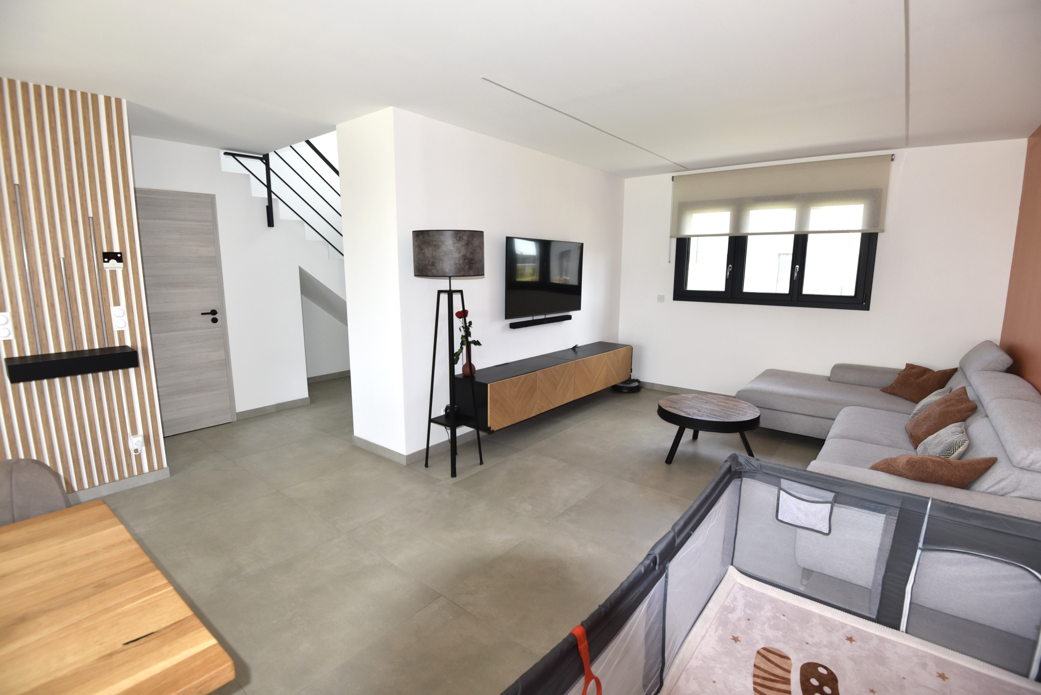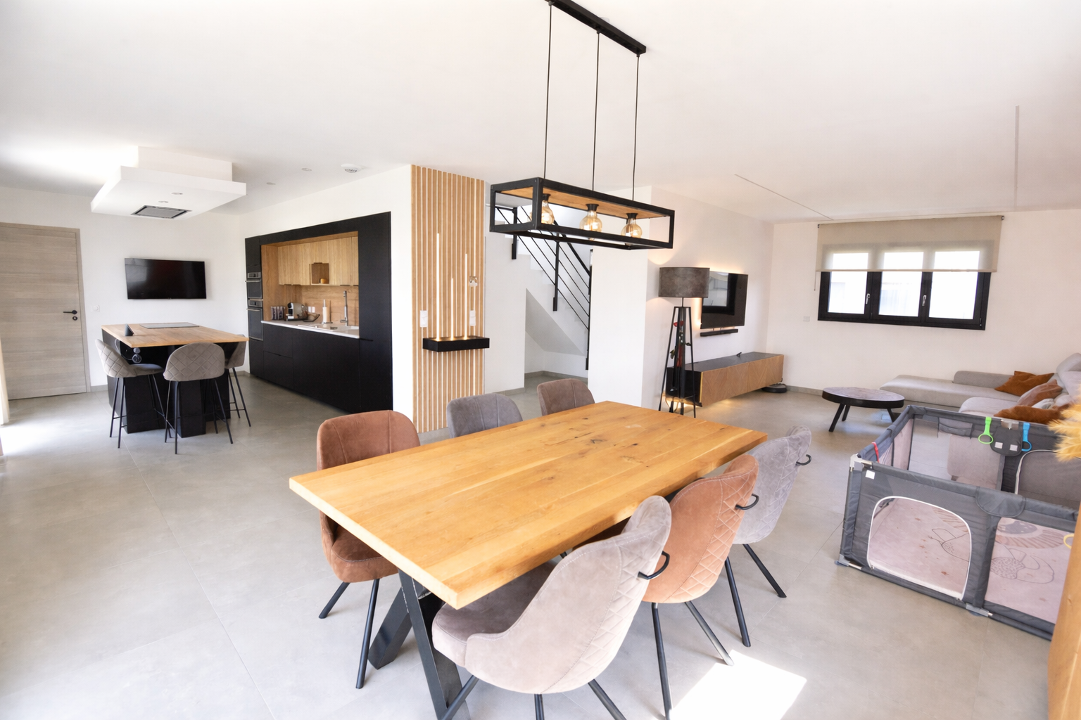 Dans un environnement résidentiel calme et très recherché de Breistroff-La-Grande, OPEN Immobilier vous présente en exclusivité cette superbe maison individuelle construite en 2023 par Maison Claire, offrant 140 m2 de confort moderne sur un terrain de 5,39 ares.Dès l’entrée, vous serez séduit par les volumes et la luminosité. La pièce de vie de 57 m2, véritable cœur de la maison, propose une cuisine ‘Mobalpa’ entièrement équipée ouverte sur un espace salon / séjour spacieux ouvert , idéale pour recevoir. L’ensemble s’ouvre directement sur une terrasse et un jardin entièrement clôturé, parfait pour profiter des beaux jours en toute tranquillité. Un WC séparé complète ce niveau.À l’étage, un espace nuit parfaitement agencé : deux belles chambres de 13.79 et 13.67 m2 , une grande salle de bain avec baignoire et douche, ainsi qu’une superbe suite parentale de 21.5 m2 avec dressing et salle d’eau privative. Un bureau (ou chambre d’appoint) vient compléter cet étage, idéal pour le télétravail.Côté pratique, vous bénéficiez d’un garage double côte à côte et d’une buanderie fonctionnelle.Côté prestations, la maison bénéficie de menuiseries aluminium K-LINE et PVC double vitrage, de volets roulants motorisés, d’une pompe à chaleur réversible, d’un chauffage au sol sur les deux niveaux Lien vers la visite virtuelle : https://my.matterport.com/show/?m=TwfcfPaVnoM Les informations sur les risques auxquels ce bien est exposé sont disponibles sur le site Géorisques : www.georisques.gouv.fr. Prix : 649 000 € – Honoraires charge vendeurs Agence OPEN Hettange-Grande 49B rue Patton – 57330 HETTANGE GRANDE Contact : M.BOMBINO Tèl: 06 74 94 41 92 – Courriel : bombino@open57.fr