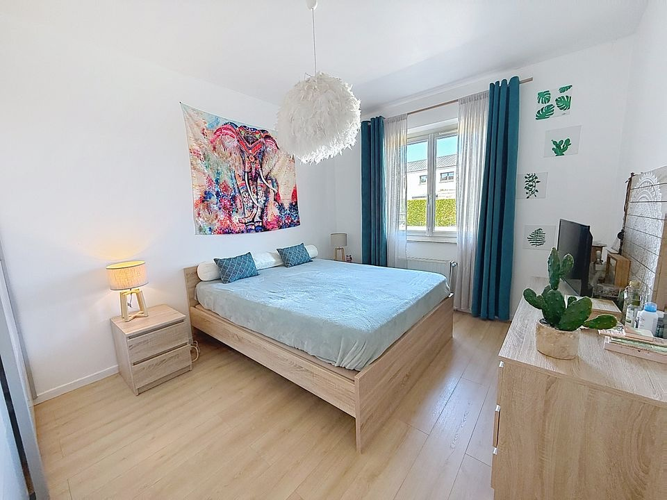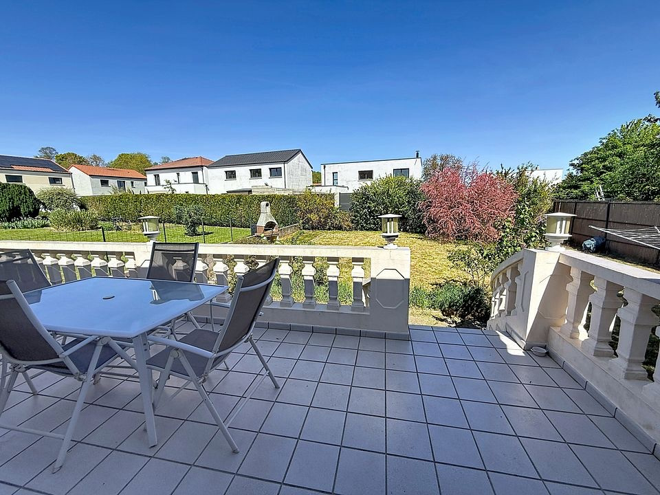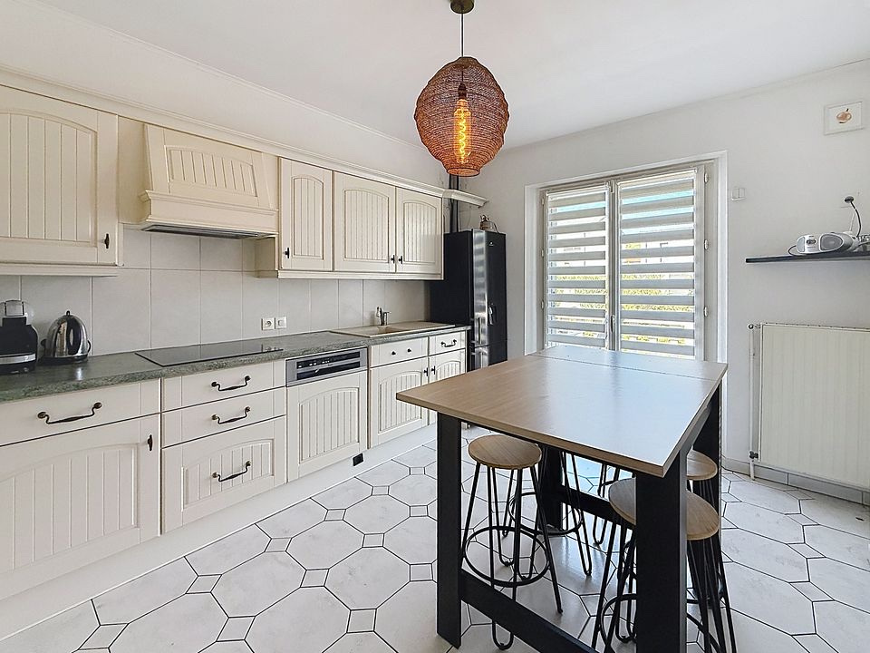 OPEN Immobilier vous propose en exclusivité cette très belle maison accolée d’un côté édifiée en 1991 d’une superficie habitable de 152.80 m2 sise sur un terrain de 5,58 ares comprenant principalement : AU RDC : Une entrée avec placard de 14,11 m2, un salon séjour carrelé de 33,12 m2 doté d’une cheminée, une cuisine équipée séparée de 13,28 m2 accédant sur la terrasse, 2 chambres à coucher parquetées faisant respectivement 12,86 m2 & 12,39 m2 avec dressing 4 portes coulissantes, une salle de bains aménagée de 6,63 m2, un wc séparé de 1,70 m2. COMBLES (récemment aménagés avec velux et volets motorisés) : comprenant un palier desservant 2 chambres à coucher parquetées, une SDB/wc équipée Le sous-sol est composé de 2 pièces aménagées, une salle de douche/wc, une buanderie carrelée (avec évier, ballon d’eau), caves, chaufferie… GARAGE de 41,64 m2 accédant à la cuve à fioul (sous la terrasse) et au jardin TERRASSE / JARDIN clos *** Espace comble, voir plans et surfaces > 1,80 m2 Les pièces aménagées au sous-sol prises en compte : 2 chambres + SDD Informations complémentaires: Chauffage au fioul Prix : 399 000 € (honoraires à la charge du vendeur) Informations sur les risques disponibles sur : www.georisques.gouv.fr N’hésitez pas à nous contacter pour plus d’informations, photos complémentaires ou pour organiser une visite. Agence OPEN IMMOBILIER Hettange-Grande tél.: 03 82 54 74 50 V/contact: MME. KARACA N. gsm: 06 63 85 87 22 mail: karaca.open57@gmail.com // karaca@open57.fr