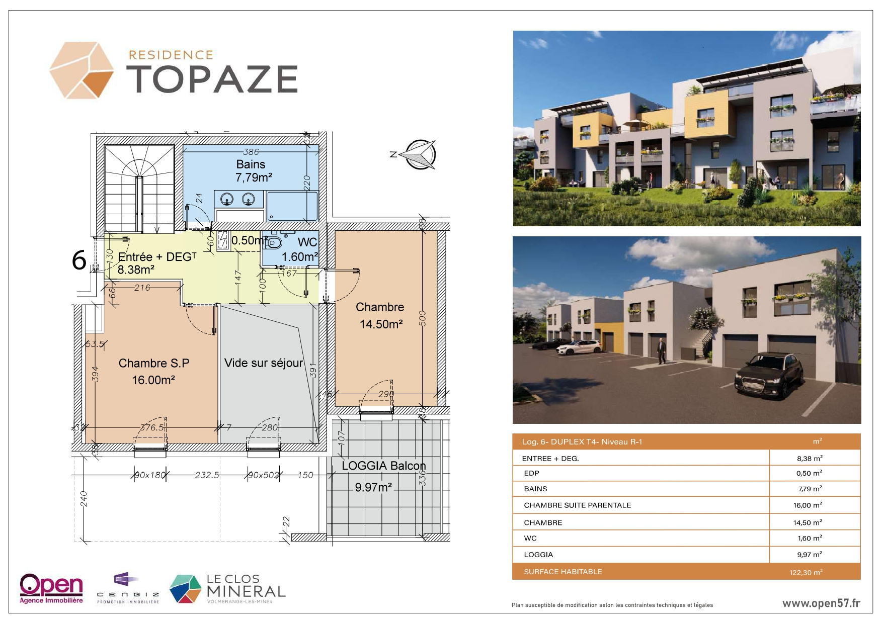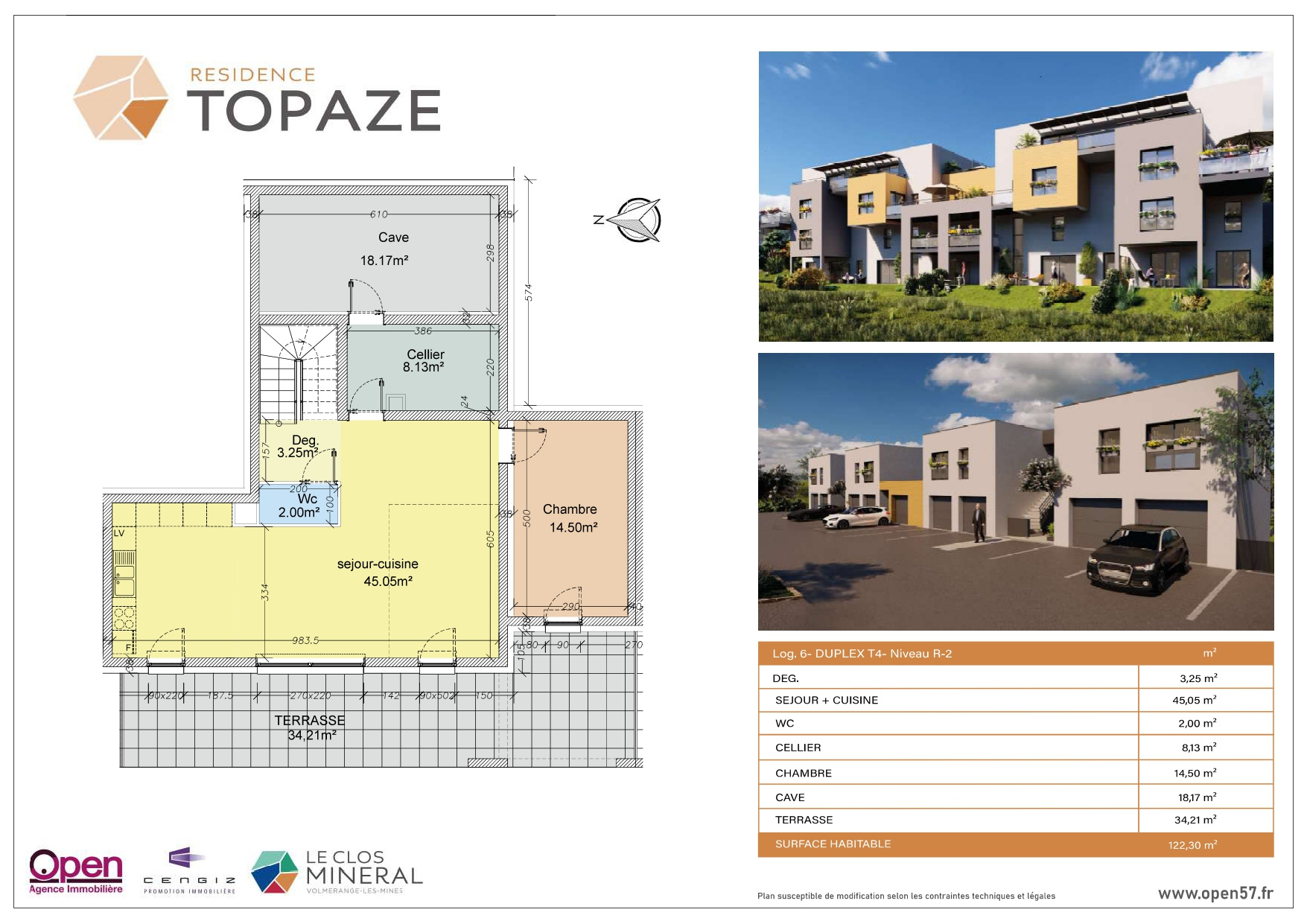 Bienvenue à Volmerange les Mines aux portes du Luxembourg, commune prisée et recherchée où il fait bon vivre, proche des commodités, écoles et nombreux commerces. Niché sur les hauteurs, Le Clos Minéral vient prendre place dans un cadre verdoyant offrant une vue exceptionnelle. Délicatesse, calme et harmonie sont les maîtres mots dans cet ensemble immobilier où vous pourrez jouir du quotidien dans des appartements baignés de lumière naturelle, des maisons de ville ou des maisons individuelles. Le Clos Mineral propose une architecture moderne et des matériaux de haute facture. Sa beauté est éclatante et se révèle à chaque instant, chaque détour, chaque regard. A seulement quelques kilomètres du Luxembourg, au sein du Clos Minéral, venez découvrir sans plus attendre la résidence Topaze. Nichée sur les hauteurs de Volmerange-les-Mines, sa proximité immédiate avec la frontière et les commodités lui confère sa rareté. Dans un cadre verdoyant et sécurisé, choisissez un des douze logements composant la résidence Topaze. Chacun d’entre eux a été soigneusement configuré pour vous offrir un cadre de vie paisible et agréable. Tous, bénéficient ainsi d’un aménagement soigné et de prestations de qualités. De plus, les appartements vous offrent la possibilité d’être personnalisables selon certains critères, pour faire de votre bien un lieu de vie unique et confortable. Parfaitement designer pour accueillir jeunes actifs, parents et familles, faite d’un logement composant la résidence Topaze, votre lieu de vie ou votre investissement immobilier.