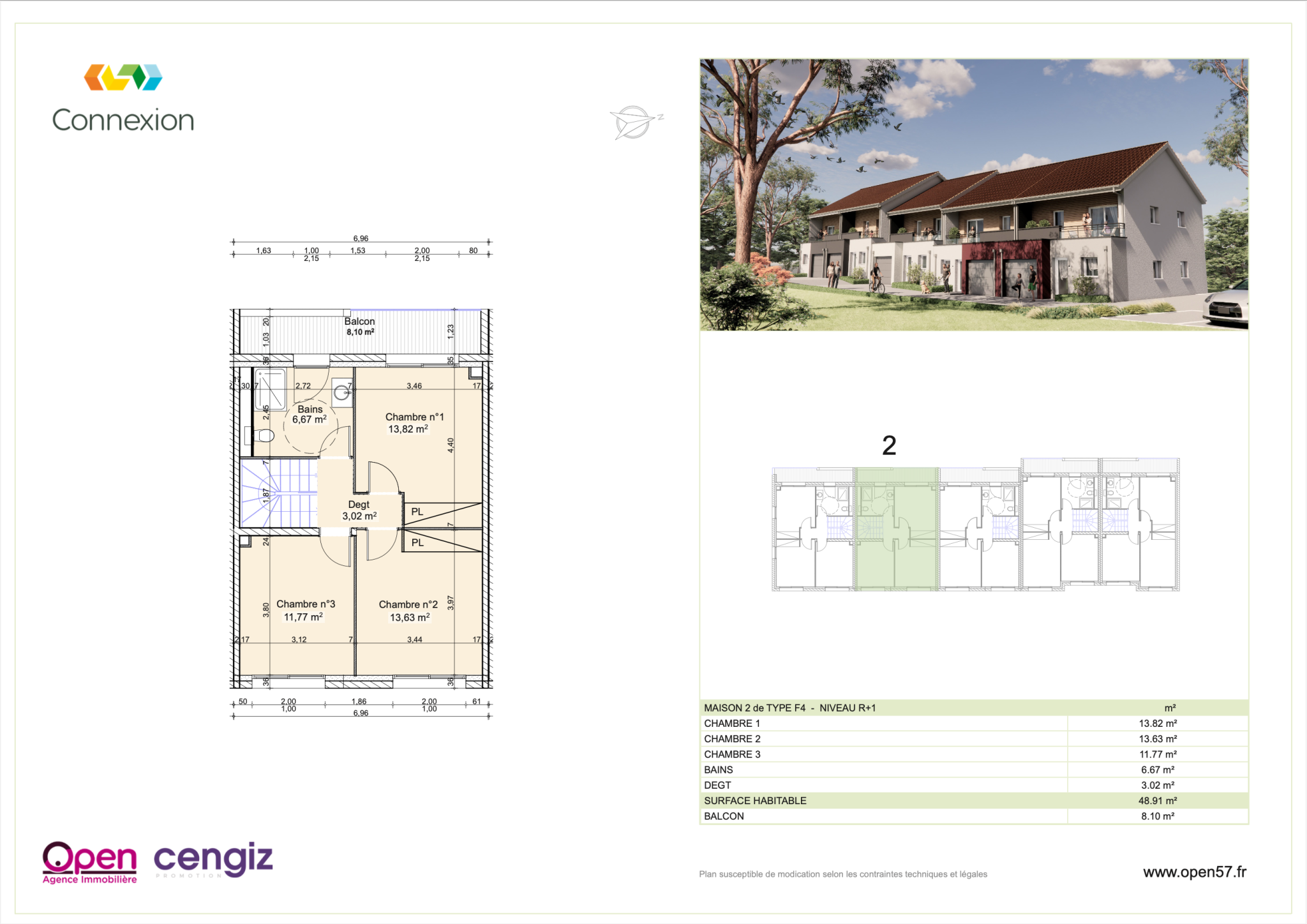Découvrez le Lot 2 du projet résidentiel Connexion à Hettange-Grande : une maison mitoyenne des deux côtés, à la conception indépendante, proposée au prix de 395 000 €. Dotée d’une surface habitable de 97,29 m2, cette maison bénéficie également d’un garage de 14,34 m2, d’une terrasse de 14,94 m2 en rez-de-chaussée avec un espace jardin, ainsi qu’un balcon de 8 m2 à l’étage, offrant des espaces extérieurs agréables et fonctionnels pour un confort optimal. Ce projet comprend un ensemble de cinq maisons de type F4, pensées pour un cadre de vie paisible à quelques pas de la frontière luxembourgeoise, dans un quartier résidentiel proche du centre d’Hettange-Grande. La commune offre de nombreux atouts tels que des écoles, des commerces, des services de proximité et un accès facile aux autoroutes et aux transports en commun. Les maisons de la résidence Connexion se caractérisent par des prestations haut de gamme et sont personnalisables selon vos envies. Elles intègrent notamment des menuiseries en PVC avec double vitrage, des volets roulants électriques, un chauffage au sol et une isolation extérieure performante. Pour plus d’informations, contactez-nous au 03 82 54 73 57 ou par e-mail à contact@open57.fr.