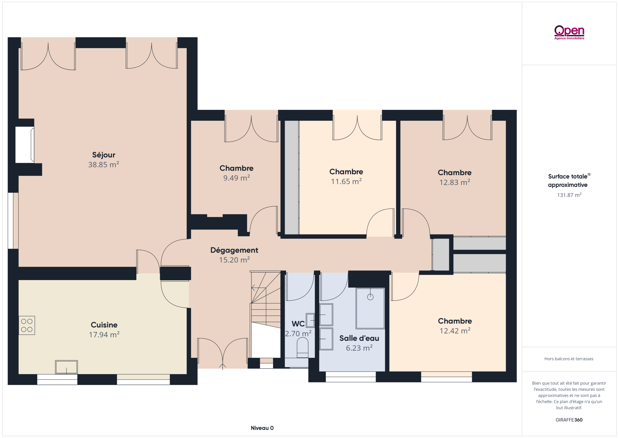 OPEN immobilier présente en exclusivité cette maison individuelle entièrement rénovée de 120 m2 habitables sur un terrain de 9,93 ares, comprenant principalement : Au rez-de-chaussée : une entrée accueillante avec placard de rangement, un espace de vie d’environ 38 m2, parqueté, agrémenté d’une cheminée et équipé d’une climatisation réversible, une cuisine séparée entièrement équipée de 17 m2 (four, plaque de cuisson, hotte, évier, lave vaisselle et frigo), un dégagement carrelé avec placard desservant 4 chambres à coucher parquetées ; 3 chambres disposent de placards sur mesure, un WC séparé avec lave-main et une salle d’eau (double vasque, sèche-serviettes, douche). Un accès direct à la terrasse et au jardin est possible depuis le salon/séjour et 3 chambres. Au sous-sol : un dégagement menant à 3 grandes pièces de stockage, une buanderie aménagée, la chaufferie et un très grand garage de plus de 50m2. Compléments d’informations : – Pompe à chaleur, isolation extérieur, combles et sous-sol – 2024 – Consommation : 83 kWh/m2/an : B – Emission de gaz à effet de serre : 2 kg CO2/m2/an : A PRIX : 510 000,- € honoraire à la charge des vendeurs Agence OPEN IMMOBILIER Thionville tél.: 03 82 54 74 50 V/contact: M. CENGIZ.T gsm: 06 60 15 30 44 mail:cengiztgr@gmail.com