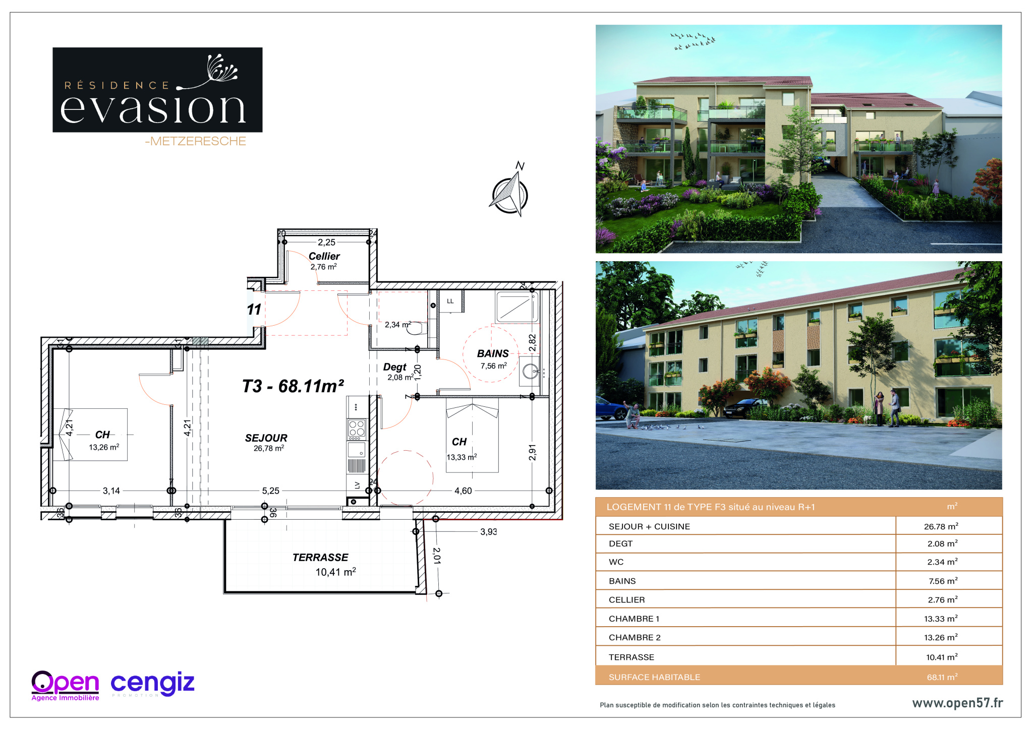 Nous sommes ravis de vous présenter la résidence de haut standing « Evasion». Située à quelques minutes de la frontière et à proximité des principaux axes autoroutiers. Idéalement positionnée pour les personnes actives. Cet appartement de trois pièces situé au r+1, offrant une superficie habitable de 68,11 m2, vous séduira de par son espace de vie spacieux et lumineux. De plus, profitez d’un espace extérieur privé de 10,41 m2 où vous pourrez vous ressourcer dans un environnement paisible. Les prestations offertes dans cet appartement sont à la hauteur de vos attentes les plus élevées. Les finitions haut de gamme, telles que le carrelage au design raffiné et l’utilisation de matériaux de qualité, ajoutent une touche d’élégance à votre espace de vie. De plus, vous avez la possibilité de personnaliser certains éléments afin de créer un espace qui vous ressemble et qui répond à vos besoins. La livraison de cet appartement est prévue pour le troisième trimestre 2026, vous laissant ainsi le temps nécessaire afin de planifier sereinement votre installation. Cet appartement est une véritable opportunité pour ceux qui recherchent l’excellence et la commodité. Ne manquez pas cette occasion unique de vivre dans un cadre idyllique, alliant confort, sécurité et rentabilité. Contactez nous dès aujourd’hui pour obtenir plus d’informations sur cet appartement d’exception au sein de la résidence « Evasion ». OPEN IMMOBILIER 20, ALLEE CHATEAU DE GASSION 57100 THIONVILLE- 03.82.54.73.57