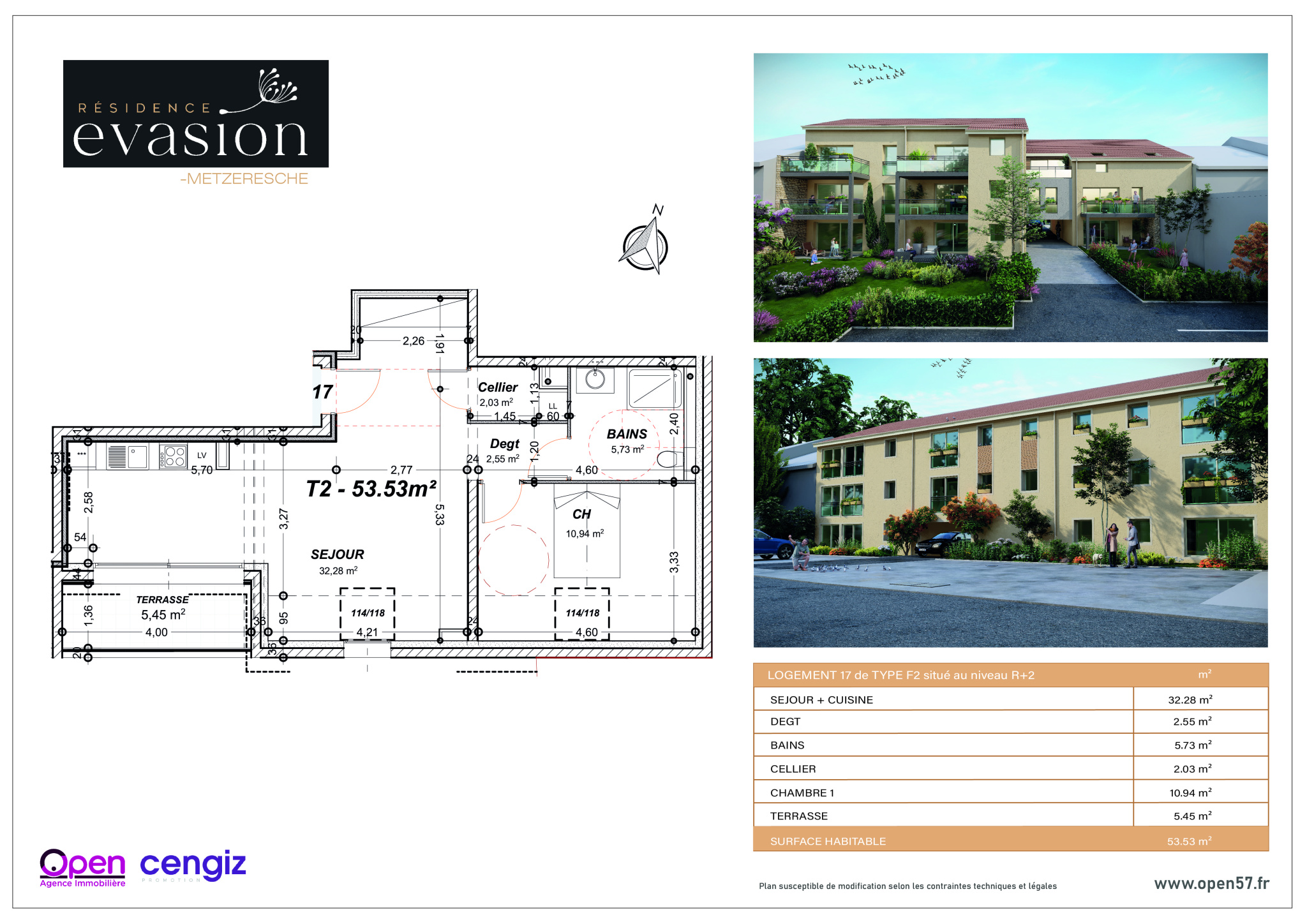 Nous sommes ravis de vous présenter la résidence de haut standing « Evasion». Située à quelques minutes de la frontière et à proximité des principaux axes autoroutiers. Idéalement positionnée pour les personnes actives. Cet appartement de deux pièces situé au r+2, offrant une superficie habitable de 53,53 m2, vous séduira de par son espace de vie spacieux et lumineux. De plus, profitez d’un espace extérieur privé de 5,45 m2 où vous pourrez vous ressourcer dans un environnement paisible. Les prestations offertes dans cet appartement sont à la hauteur de vos attentes les plus élevées. Les finitions haut de gamme, telles que le carrelage au design raffiné et l’utilisation de matériaux de qualité, ajoutent une touche d’élégance à votre espace de vie. De plus, vous avez la possibilité de personnaliser certains éléments afin de créer un espace qui vous ressemble et qui répond à vos besoins. La livraison de cet appartement est prévue pour le troisième trimestre 2026, vous laissant ainsi le temps nécessaire afin de planifier sereinement votre installation. Cet appartement est une véritable opportunité pour ceux qui recherchent l’excellence et la commodité. Ne manquez pas cette occasion unique de vivre dans un cadre idyllique, alliant confort, sécurité et rentabilité. Contactez nous dès aujourd’hui pour obtenir plus d’informations sur cet appartement d’exception au sein de la résidence « Evasion ». OPEN IMMOBILIER 20, ALLEE CHATEAU DE GASSION 57100 THIONVILLE- 03.82.54.73.57