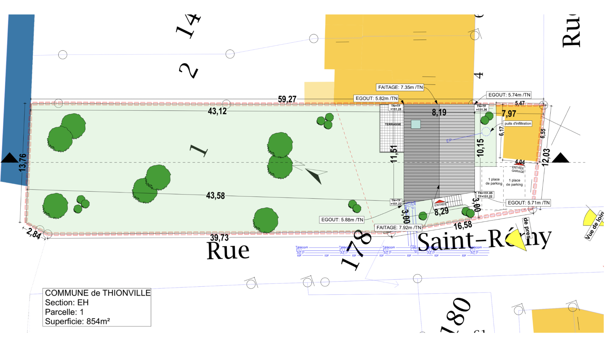 EXCLUSIVITE OPEN IMMOBILIER – Offrez-vous un terrain de 854m2 dans un environnement d’une quiétude absolue, tout en étant à proximité immédiate des commerces, transports et de la frontière luxembourgeoise, ainsi que du centre nucléaire. Ce terrain, situé dans un quartier paisible, est idéalement prévu pour accueillir une maison traditionnelle mitoyenne d’un côté, parfaitement en harmonie avec le voisinage et l’environnement local. Le permis de construire est en règle et permet la réalisation de ce projet d’une maison de 121m2 habitable qui s’intègrera parfaitement dans le paysage. De plus, bénéficiez déjà d’une structure existante qui sera métamorphosée en garage pour faciliter votre futur chez-vous. Sur la photo, vous pouvez déjà entrevoir la future façade qui comportera deux étages, dans des tons de blanc cassé et de beige pour une esthétique chaleureuse et accueillante. Les tuiles, d’un rouge vieilli, ajouteront du cachet à cette construction, tandis que les menuiseries extérieures en PVC, de couleur blanc cassé, garantiront luminosité et élégance. N’hésitez pas à saisir cette opportunité de construire la maison de vos rêves dans cet emplacement idéal ! Pour plus d’informations, nous consulter ! *** PRIX: 160 000- € – honoraires charge VENDEUR *** Agence OPEN IMMOBILIER Thionville tél.: 03 82 54 74 50 V/contact: M. CENGIZ.T gsm: 06 60 15 30 44 mail: cengiztgr@gmail.com