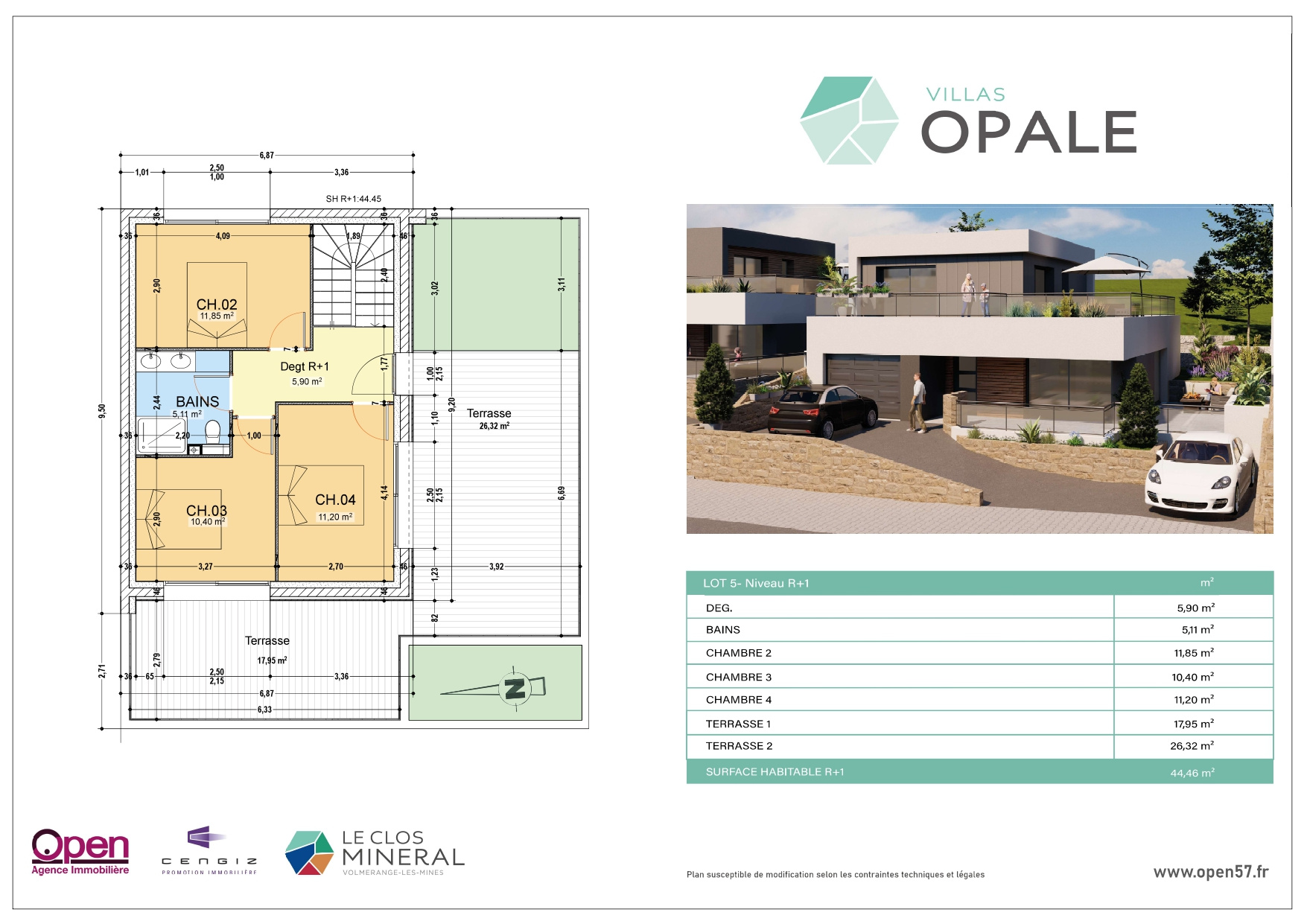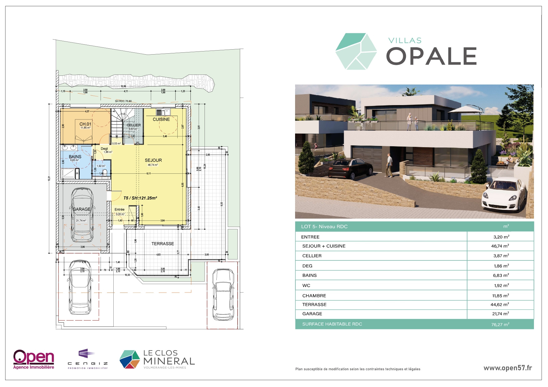 Situé à Volmerange-les-Mines aux portes de la frontière Luxembourgeoise, commune prisée et recherchée ou il y fait bon vivre, proche des commodités, écoles et nombreux commerces. Niché sur les hauteur du village, la villa OPALE 5 vient prendre place dans un cadre verdoyant offrant une vue exceptionnelle. Cette magnifique maison propose une architecture moderne et des matériaux de haute facture, elle se compose comme suit : Au rez-de-chaussée, composé d’un sas d’entrée avec espace placard vous avez ensuite accès à un grand séjour ouvert sur l’espace cuisine totalisant une superficie de 46,74 m2, vous emprunterez ensuite un dégagement vous donnant accès à une salle de bain moderne et équipée, un WC séparé, une chambre de 12 m2 et un garage avec porte motorisé d’une surface de 21,74 m2. A l’étage, un dégagement desservant une salle de bain de 5,11 m2 avec douche à l’italienne, WC suspendu et meuble double vasque, une seconde chambre de 11,85 m2, une troisième et quatrième chambre de 10,20 m2 et 11,20 m2 avec toute deux un accès à la grande terrasse de 44,27 m2. Cette maison est également dôtée d’un système de pompe à chaleur air/eau apportant une sérénité supplémentaire concernant les coûts liés aux frais d’énergie. Cette villa OPALE 5 vous assure un lieu de vie offrant tout le confort et la tranquillité dont vous avez besoin. Chacune de ces villas sont agencés de sorte à rendre votre quotidien plus fonctionnel et agréable. Au coeur de la nature, cet villa à l’architecture moderne et soignée, propose des prestations haut-de-gammes pour votre plus grand plaisir. Tarif : 650.000,00 euros (honoraire charge du vendeur) Pour plus de renseignements, nous consulter ! Agence OPEN IMMOBILIER Thionville Tél : 03.82.54.73.57